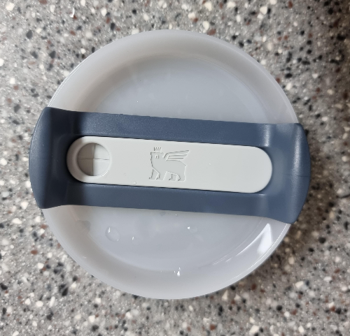 분리한 모습이다. 뚜껑 돌리는 부분의 실리콘도 분리가 된다. 그리고 회전해서 빨대를 꽂아 먹거나, 바로 주입구로 마시면 된다. 뚜껑의 색까지 마음에 드는 샴브레이 색상이다.